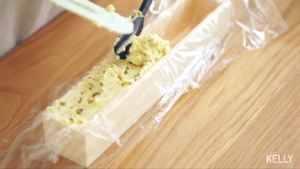 如有时间,冷藏4小时以上(过夜最佳)至面糊结实。 如果急用,可冷冻半小时后取出使用。