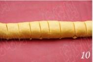 取一个小剂子,搓圆擀平,放入30克豆沙馅