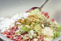 把肉糜和☆全部倒在碗里