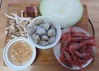 Tip:1、冬瓜为了美观用挖球器挖成圆球,没有挖球器可切成普通的片或小块; 2、瑶柱需要多煮一会才能熟软也能更好的释放鲜味; 3、北极虾最后放,煮沸后基本就成熟了,不要煮的过久,以免肉质过老。