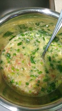 加入鸡蛋三四个,盐,搅拌。