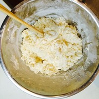面粉加入热水用筷子拌一拌,水要一点一点加入,不要一下子倒入水,