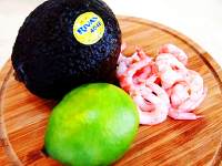 沙拉:一半牛油果切成块状,鸡蛋捣碎,加入北极虾、酸奶、绿柠檬汁搅拌。