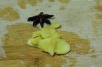 锅里放油,放入姜片和八角炒香,加入南乳蒜蓉混合液和冰糖,翻炒一下,加入猪脚爆香。