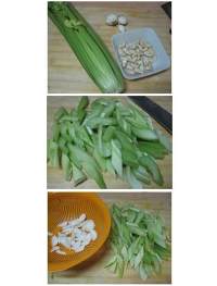 西芹放入开水锅里略微水出(水里放几滴油,使颜色更翠绿)腰果用小火慢慢焙的焦黄酥脆,放凉待用