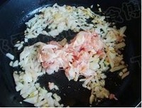 洋葱切丁,锅中放油,油热后,将洋葱爆香