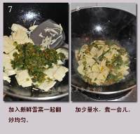 倒入雪菜一起翻炒片刻,加少量水稍煮一会儿