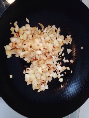 锅里放油,下洋葱。这步是关键,洋葱一定要炒到焦糊