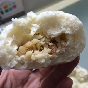 Tip:面包机和面时,先放液体,糖,再放面粉,有利于和面均匀。 我的面包机选择“发面团”程序,机器会低速和面5分钟,醒5分钟,待面粉充分吸收水分后,高速和面20分钟,最后发酵60分钟。 不同面粉的吸水性不一样,所以牛奶的份量是230~250g(深粮的向日葵需要230g牛奶,刚好一盒屋顶装巴氏鲜奶)。和好的面团不粘手,表面也不会有裂纹。 花生米炒到花生衣脱落,发出噼里啪啦的声音就可以了。 花生不用捣很碎,大小不一也没问题。花生糖馅拌入一汤匙面粉是为了防止白糖结块。 二次发酵我是放入烤箱,使用发酵功能,并放入一盘热水。发了30分钟包子就鼓鼓囊囊了,所以50~60分钟也是看情况的。 没有纱布也可以在每个包子下铺纸,我是用玉米衣。 蒸好的包子待5分钟后才开盖,否则会塌陷。