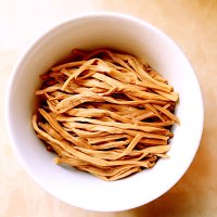 干香菇冲洗一下,净水泡发至无硬梗捞出洗净,香菇水沉淀留用
