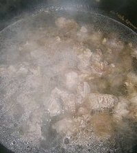 烧一锅水,水沸后全入牛肉,放一匙料酒,焯烫