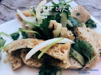 烤麸冷水浸泡2小时以上,如过夜请放冰箱冷藏。 烤麸洗净攥干水分,切成0.3cm左右片,沸水焯熟。沥干水分晾凉。