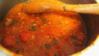 意面酱:洋葱、蒜切末,番茄切碎(建议去皮)。煮锅加热放入黄油融化,倒进洋葱、蒜和番茄碎炒香。然后加入欧芹碎,炒匀以后番茄已经出很多汁了,倒入番茄糊然后加入黑胡椒碎,搅拌均匀。调成小火慢慢煮。(如果只是单做意面酱,就直接去第4步忽略掉肉丸)