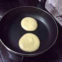 预热不粘平底锅,倒入1/4杯的糊糊(可依据个人喜好调整大小)
