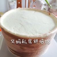 我在里面加里一点点的暖黄色,为了和放在上面的奶油霜有和色差,挤满蛋糕表面