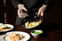 制作杭味冬笋饭团: 取一份寿司饭加入炒熟的冬笋丝+海白菜丝+雪菜丁拌匀。撒点熟芝麻。
