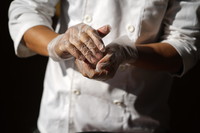 带上一次性手套开始包饭团,窝在手心里团成球状。