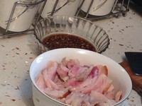 炸好的肉晾凉,切薄片码碗,不能码到盘里,那样就成不了扣肉了