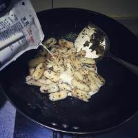 放入年糕,中火炒,炒至每一颗都油油亮亮的