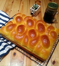 酵头材料中酵母用牛奶化开,与其他材料混合,揉成面团,温暖处发酵至最高点刚刚回落即可,撕小块与主面团除黄油外所有材料混合,揉至扩展,加入黄油揉至完全