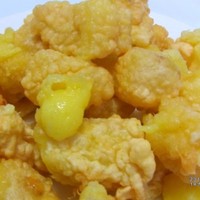 Tip:如果不想炸,把年糕切得薄点大点,沾糊之后用平底锅煎也可以。 我用的是买的黄色年糕,应该只要是受热以后就会变软的年糕都可以。