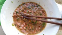 把泡方便面的水沥干 在上一个步骤中倒入泡开的方便面