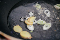 锅中油烧纸5分热,放入浆好的扇贝肉,煎熟然后捞起