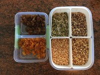 松子、核桃碎、花生碎、瓜子仁、葡萄干、杏干碎: