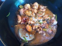 10分钟后拧干香菇水份丢进去与肉同煮,中小火闷煮二十来分钟(不是鸡腿肉的话久一点)