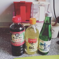 这是我用的调料,做日本料理一定要用日本的调料味道才正宗,日本酱油不能用中式酱油代替的