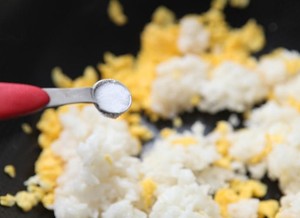 Tip:1、最好选用隔夜的米饭,倒入锅中的米饭一般会结成一起,需要耐心的用饭铲把米饭铲松,这时要转成中小火,大火容易烧糊锅底。 2、鸡蛋打散时可以倒入少量的清水,可以使炒出来的鸡蛋更嫩滑。