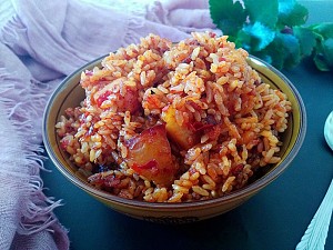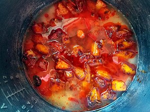 大米清洗两遍加适量清水入电饭煲 倒入炒好的土豆