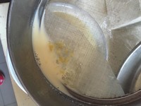 要用过滤筛过滤一遍混合液。过滤过的混合液如果有气泡的话要用勺子舀掉。