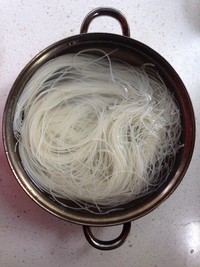 另支一锅水烧开,开始烫粉。大约一分钟。