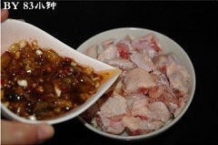 将笋丝铺在碗底,鸡翅块平铺在笋上,再盖上步骤3里调好的味料