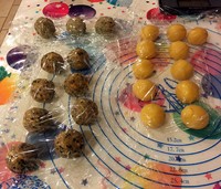 绿豆沙蛋黄馅,蛋黄加绿豆沙也是称重30克,准备3个;