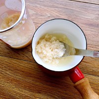 碗里舀入两大匙酒酿,再加入红糖红薯汤;