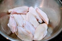 鸡翅解冻后洗干净放入不绣钢盆或陶瓷的盆,不要用㬵盆。