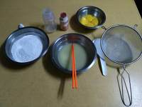 准备好材料,请不要介意图片的材料那么凌乱的赶脚,也想表达的是,在没有用具的情况下可以就地取材哈(≧ω≦) 蛋黄和蛋白分离,蛋黄放一边备用,蛋白放冰箱冷藏也好冷冻也行备用(反正短时间内不会很快结冰~听说表面有一点结冰会更好打哦)