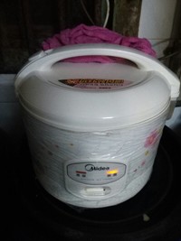 在混合蛋糕糊之前先来预热电饭煲,把电饭煲胆底层抹一层薄薄的油,边边不用哈~