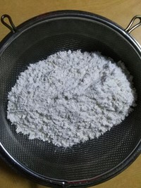 低粉和奶粉可以用这种粗孔过筛,比较容易,过筛两遍吧,备用