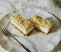 Tip:1:下面的底可以用海绵蛋糕,或者饼干碎,或者不放 2:表面饼干碎可以加可以不加,不放就是原味的啦~ 3:烤盘太浅的,注意要记得烤盘里添水,可悲的我每隔十分钟就得加一次水。 4:水浴法是烤芝士蛋糕时通常使用的方法,它可以避免芝士蛋糕烤得太老,出现口感粗糙或者口感比较“面”的情况。也可以防止蛋糕顶部烘烤时开裂。