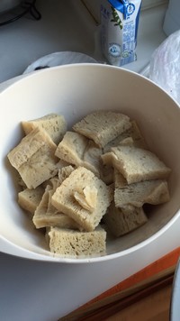 面筋用水烫,挤干水。面筋很烫,实在没办法下手,就只能借助筷子等工具了,开动吃货的脑筋吧。