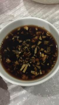 生姜切粒,蒜切粒,酱油一勺,醋四勺,糖两勺,料酒一勺,调一起,然后蒸一下变成热的。汁就调好了。