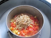 放入西红柿,煸炒,让西红柿出汁,二者混合香味。