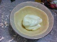 用手指将其推成皮子,并放入一小勺鲜奶油
