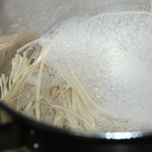 面条刚煮软,并未熟时捞出入筛过冷水备用。