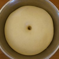 面团取出,揉圆放入盘中进行一发