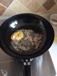 油热后 转小火 打入一个鸡蛋 煎成荷包蛋 把煎好的蛋拨到一边 下肉片翻炒