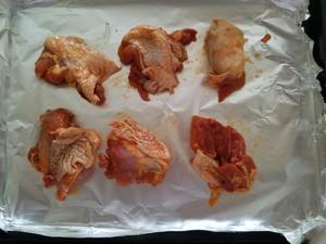 烤盘铺好锡纸放上鸡肉,烤箱预热200度,中层烤30分钟,中间翻一次面。